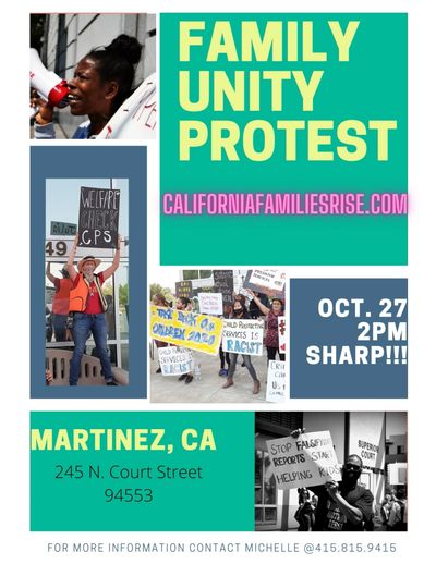 FAMILIES BELONG TOGETHER. Our child welfare system and family courts are broken, all too often causing more harm than good. If you are poor, or black, or brown- you don't have a chance in hell. Help us either fix or dismantle this system. Join us October 27, at 2pm at Waterfront Park in Martinez, California.